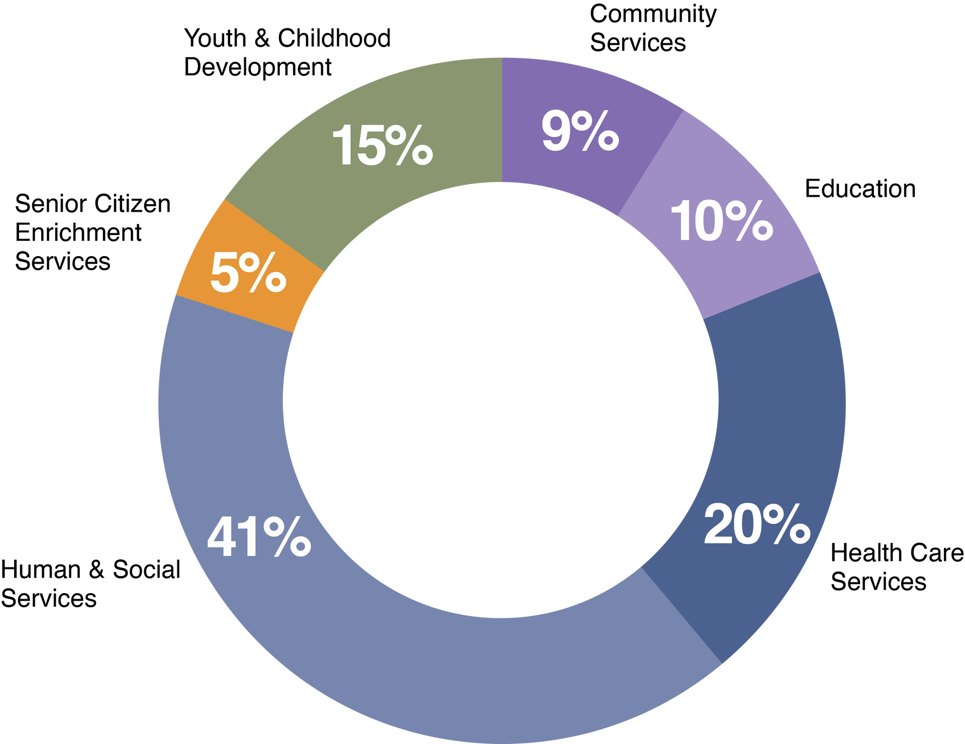 Memorial Foundation places special emphasis on assisting nonprofit organizations that focus on: health; youth & children; senior citizens; education; human & social services; and community services. The breakdown of giving by category is from 1996 through 2025.